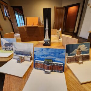 また、愛知県の建物を題材とした折り紙建築作品の展示会も開催。作品を通して建物に施された工夫や美しさにふれていただきました。