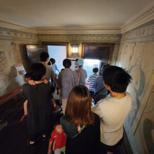 普段は非公開の3階の部屋や地下トンネルなども案内し、参加者のみなさんは興味深そうに見入っていました。