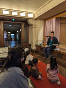 講師による自作絵本の読み聞かせも好評で、参加者はその世界観に引き込まれていました。